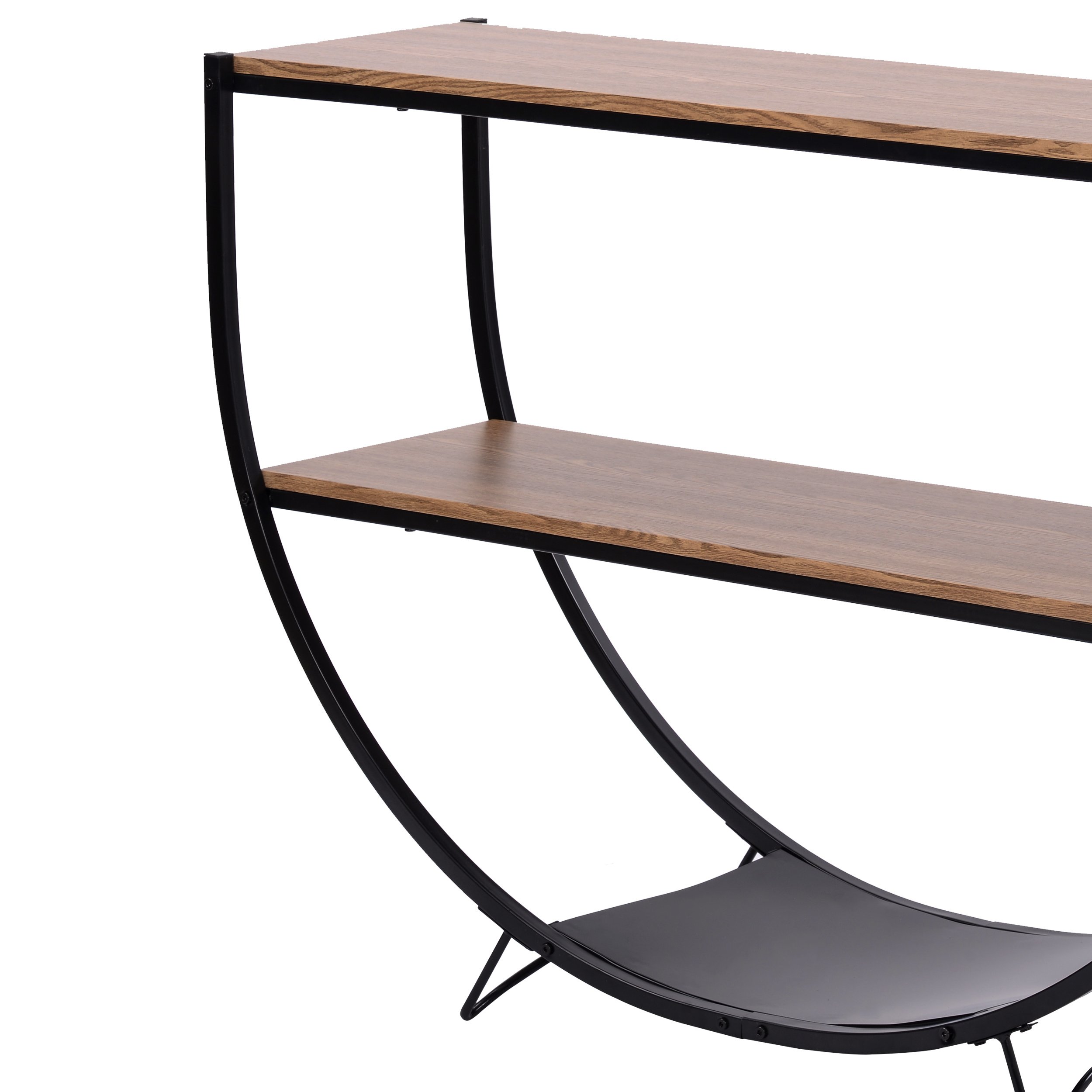 1.CHIC RUSTIC INDUSTRIAL CLASSIC DESIGN: Its base showcases a demilune shape awash in an antique black finish and a metal lower shelf lends a touch of industrial charm.