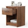 Wooden End Side Table Nightstand with Drawer Storage Shelf