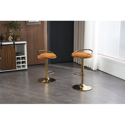 Bar Stools Set of 2 Counter Height Adjustable velvet Padded 360° Swivel Bar Chairs Modern Industrial Style Barstool for Home Kitchen Island(2PCS/CTN)